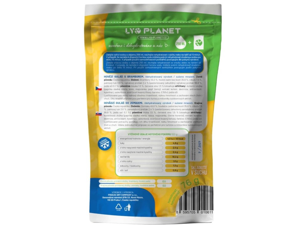 Výrobce: FREEZE DRY COMPANY s.r.o., Senovážné náměstí 978/23, Nové Město, 110 00 Praha 1, Česká republika.