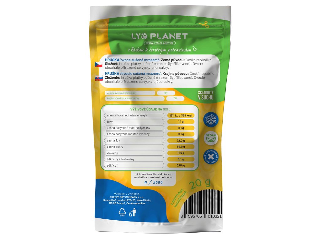 Výrobce: FREEZE DRY COMPANY s.r.o., Senovážné náměstí 978/23, Nové Město, 110 00 Praha 1, Česká republika.