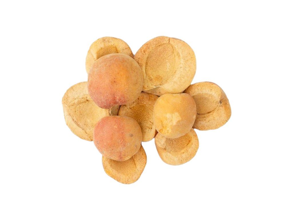 Meruňka. Dehydratovaný výrobek. Sušeno mrazem. Lyofilizované potraviny nabízejí dlouhou trvanlivost, nízkou hmotnost a zachování všech živin i chuti.