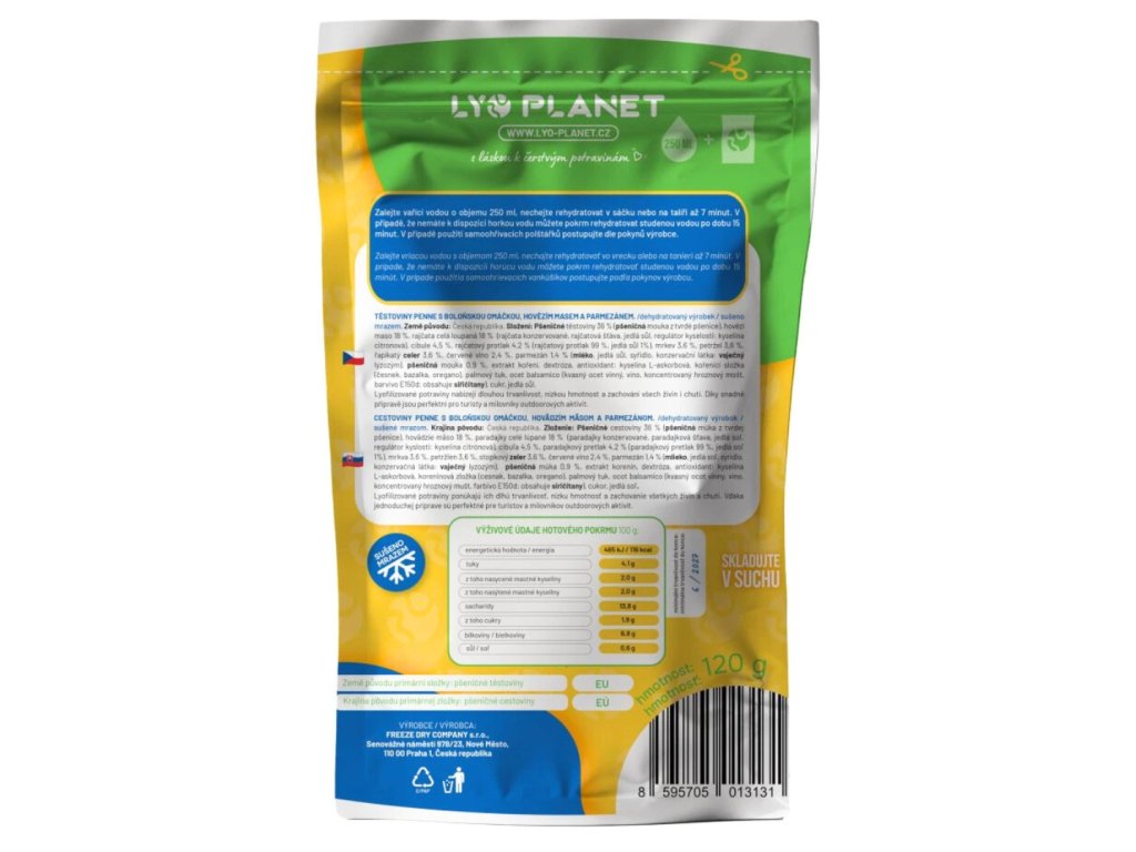 Výrobce: FREEZE DRY COMPANY s.r.o., Senovážné náměstí 978/23, Nové Město, 110 00 Praha 1, Česká republika.